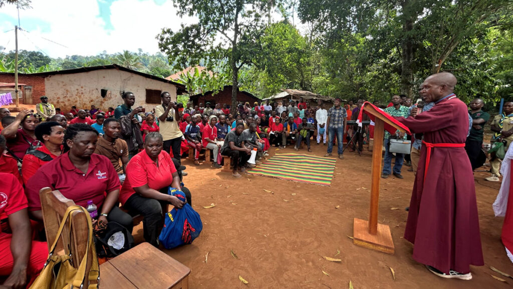 The whole procession moves like a joyful parade – singing, drumming, blowing trumpets, waving flags. They arrive in a village and immediately hold an open-air service with baptisms, marriages and plenty of dancing.