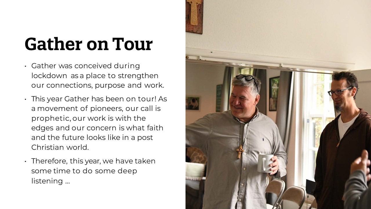 This year, Gather went on tour – right across the country. Thank you to everyone who hosted us and who took part. Here are some images, reflections and themes which emerged from the tour.